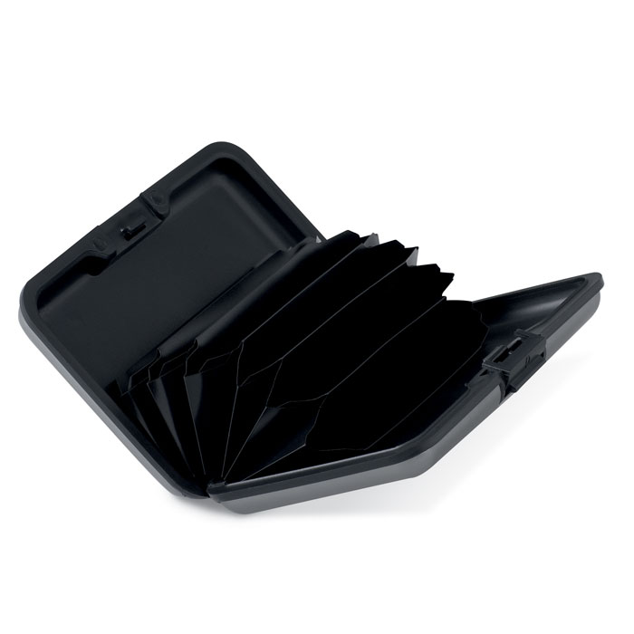 Aluminiowe etui na karty kredytowe. W środku posiada 6 przegródek.