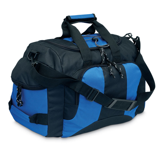 Sportowa lub podróżna torba z 3 bocznymi przegrodami na suwak. Osobna komora na buty. Materiał: poliester 600D.
