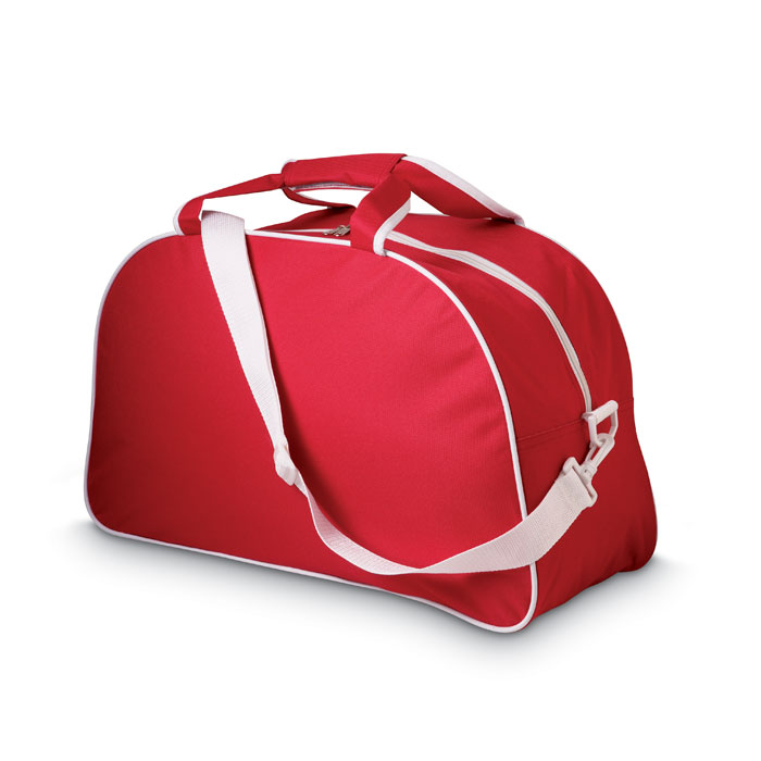 Torba sportowa z odłączanym paskiem na ramię. Kolorowy polyester 600D i podkładka z PVC. Biała lamówka.