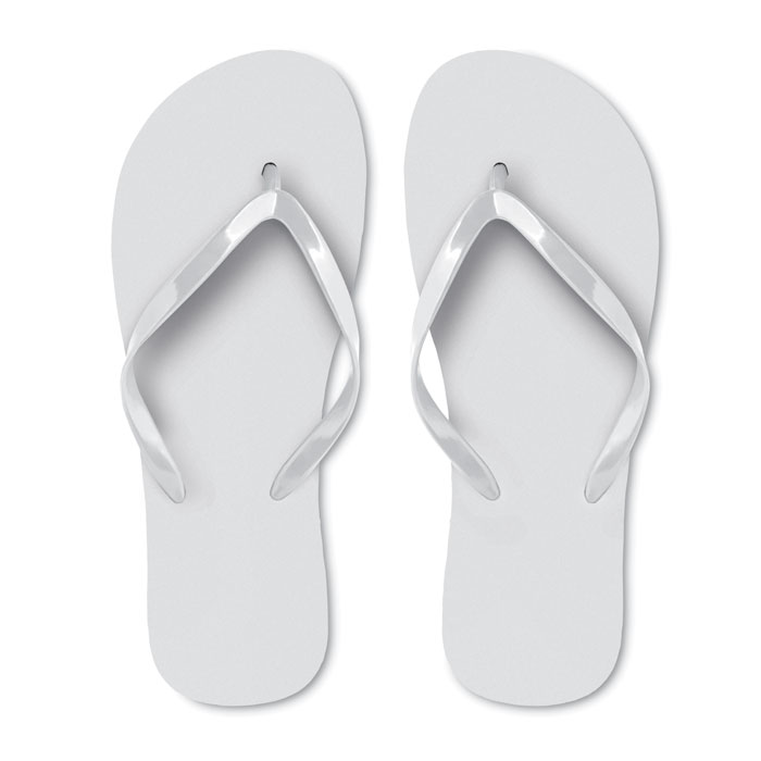 Plażowe japonki z podeszwą z polietylenu i paskiem z PVC. Dostępne w dwóch rozmiarach, M (36-39) i L (40-43). Do wykonania możliwy laser L(1).